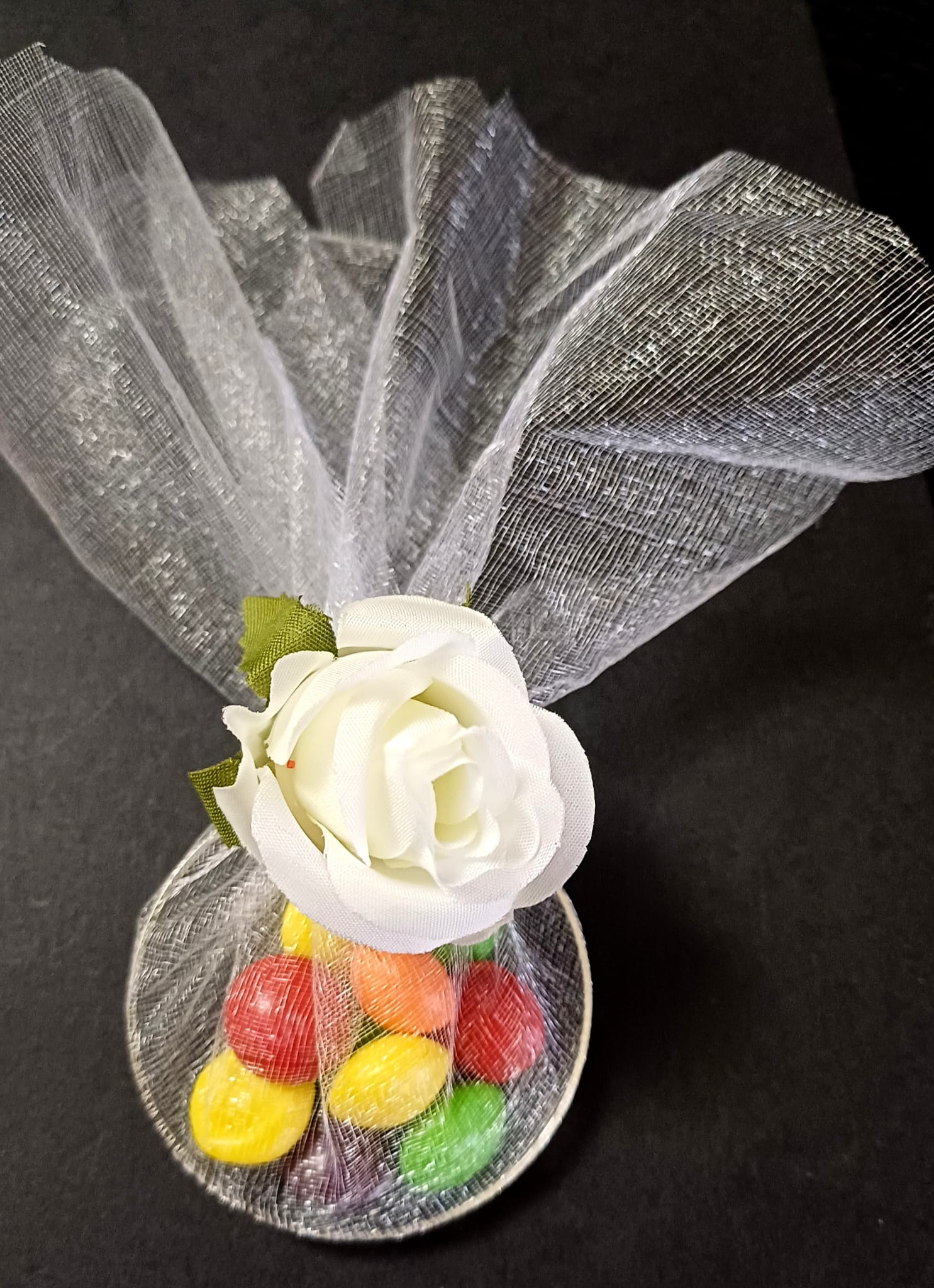 Scopri l'eleganza delle nostre bomboniere e segnaposto floreali, delicate creazioni con tulle e fiori per i tuoi momenti speciali.