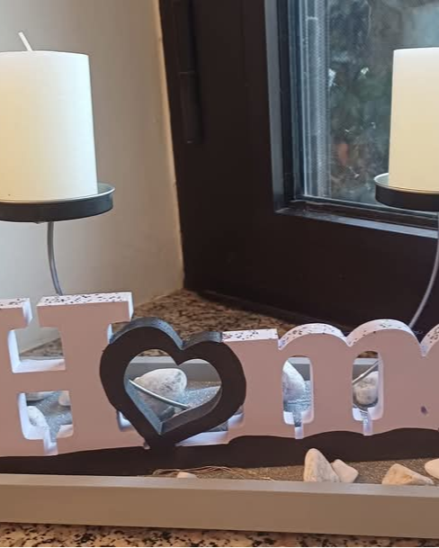 Realizzato con lettere in legno lavorate a mano, portacandele stilizzati con succulente e una base decorativa con sabbia e pietre, è il simbolo perfetto dell'accoglienza. Ideale per la tavola del soggiorno, un camino o un ingresso, aggiunge un tocco di eleganza naturale e un'atmosfera serena alla tua casa. Un regalo ideale per inaugurazioni o per chi ama i dettagli che fanno la differenza.